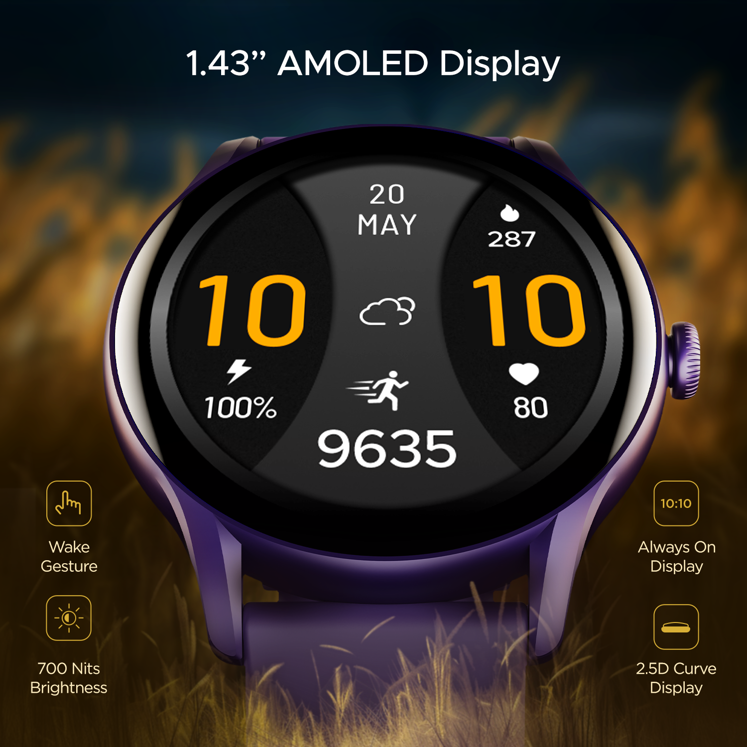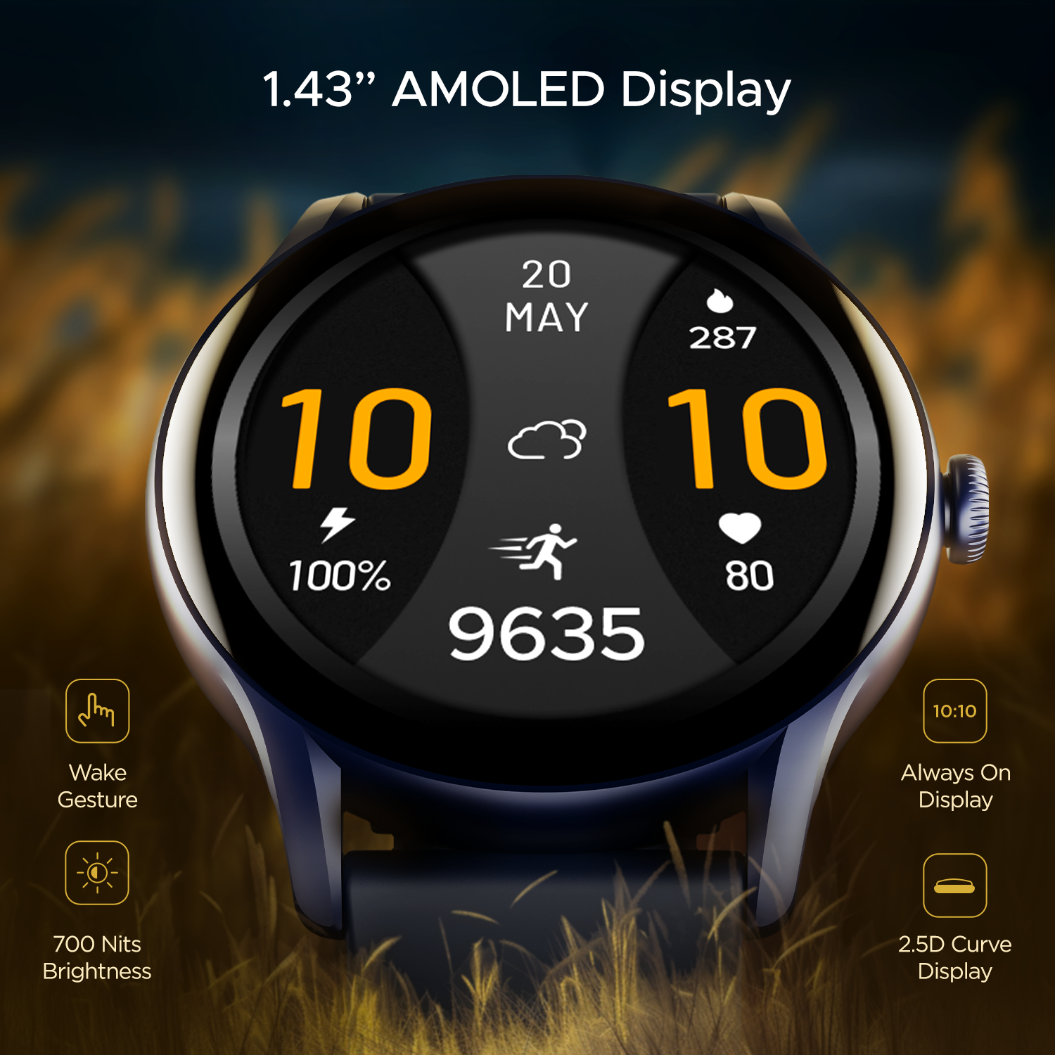 Experience excellence with 1.43” AMOLED Display that gets you unmatched clarity and rich colour output. Choose to keep it on Always On Display never miss any detail with its 700 Nits brightness.