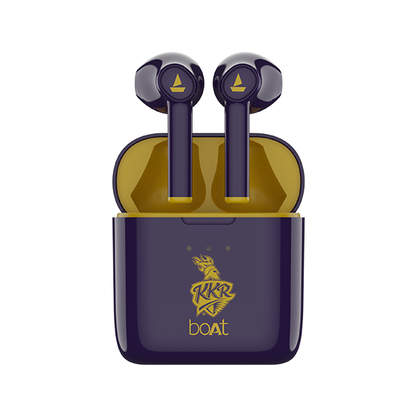Enjoy the stellar performance of Kolkata Knight Riders with the dynamic boAt Airdopes 131 KKR Edition! Dive along with your favourite batsman enjoying the boAt Signature Sound and 13mm drivers to the fullest. With IWP technology, it is time for you to experience an instant connection with your champions and hear the sound of victory. With a battery capacity of 40mAh for each wireless earbud, it is time to indulge in the commentary and feel the heat of Knight Riders rising in you!