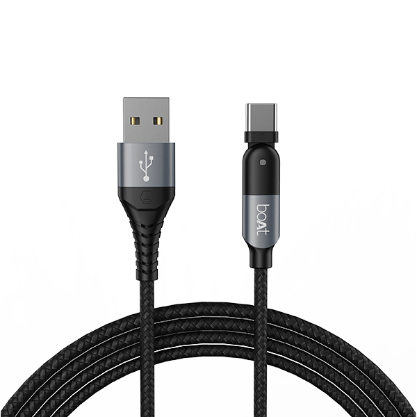 Experience a new way to charge with boAt C AXIS Rotating Type C Cable that allows 180 degree rotation to minimise stress on your cable. It also comes powered with 3A Fast Charging and 480mbps Superior Data Sync to support fast charging technologies. Its 1.5m nylon braided cable increases its lifespan significantly and makes it perfect for using your device while charging. Its universal compatibility can empower you to connect all your Type C compatible devices seamlessly.