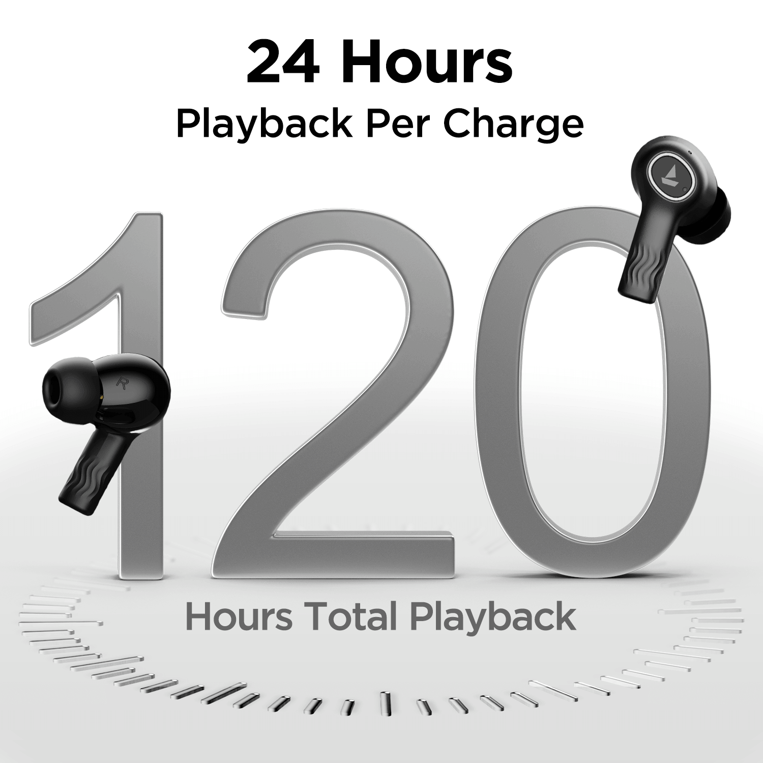 Have an undisturbed listening experience for the first time ever with each earbud giving you a massive industry-leading 24 Hours playback.